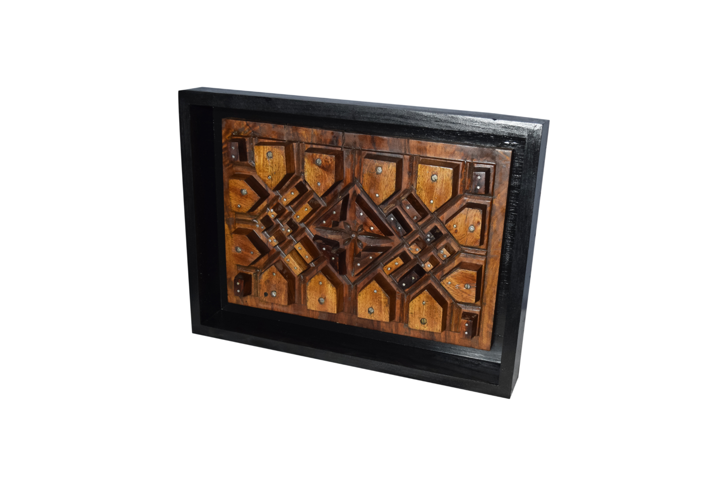 For this mold. I built an outer wood box frame and painted it black. I attached the finished wooden mold within. This frame and mold can now be hung on a wall or placed on a table top or other surface for display.